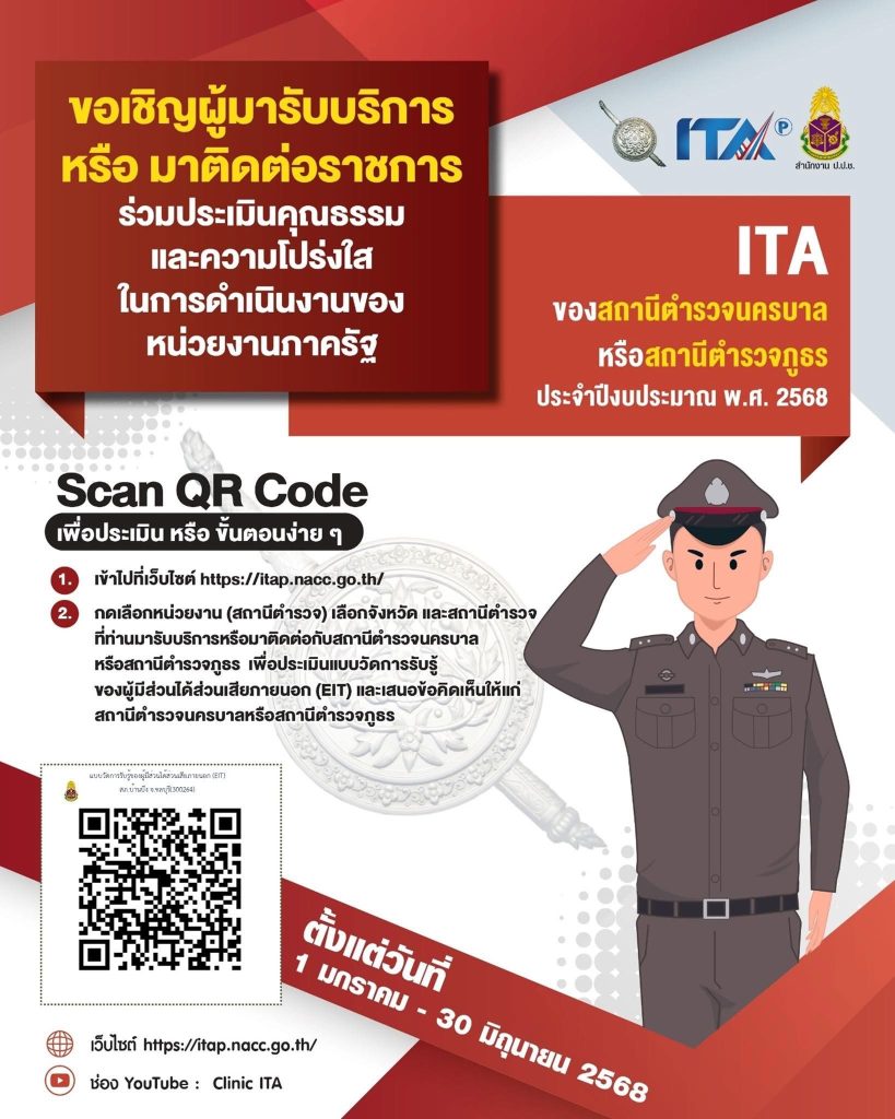 ขอเชิญผู้มารับบริการ หรือ มาติดต่อราชการร่วมประเมินคุณธรรมและความโปร่งใสในการดำเนินงานของหน่วยงานภาครัฐ ITA ของสถานีตำรวจภูธรบ้านบึง ประจำปีงบประมาณ พ.ศ. 2568