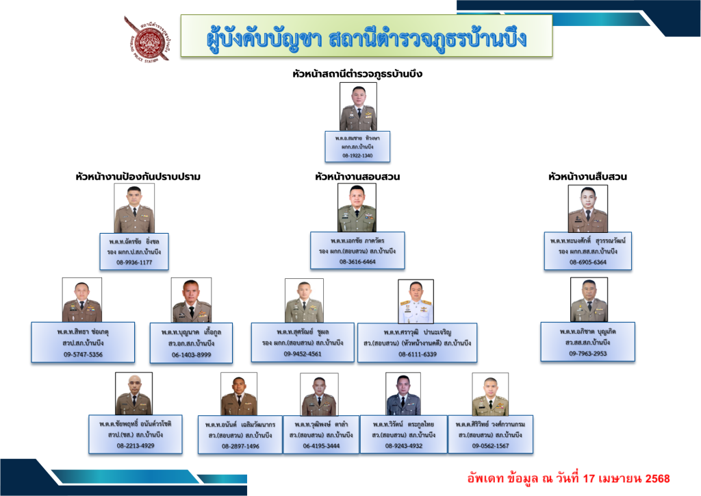 หากไม่ได้รับความสะดวกในการติดต่อราชการหรือต้องการร้องเรียนเชิญพบผู้กำกับการ สภ.บ้านบึง